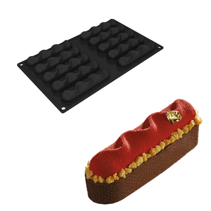 Форма для профессионального использования из силикона. Общий размер формы: 300х175 мм. Размер ячейки 115х24 мм, высота 20 мм. Объём 10 ячеек по 38 мл, общий объем 380 мл.Состав: Силикон