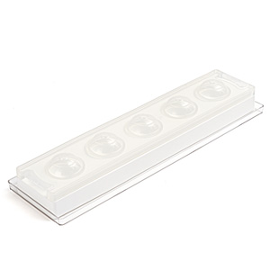 Набор состоит из прозрачного подноса (VGEL03) 12x40 см +1 набора форм.Размеры сферы: d 58 мм, объем 102x5=510 млСостав: силикон + поликарбонат
