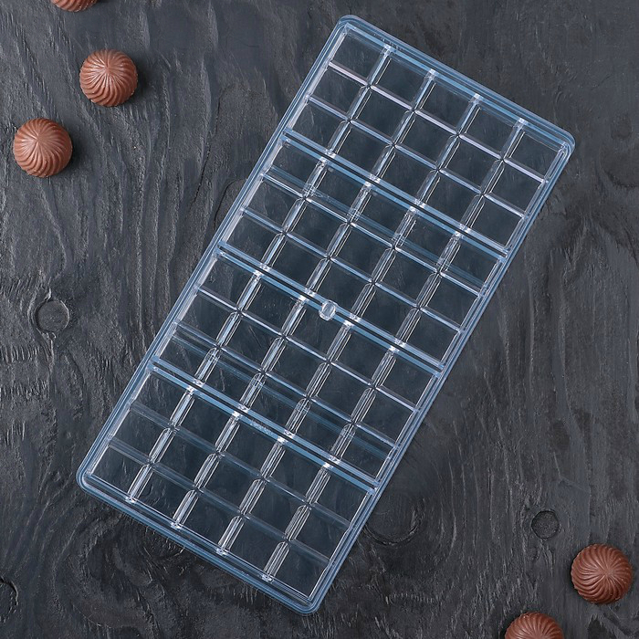 Поликарбонатная форма для классической плитки шоколадаЧтобы получить красивый глянцевый блеск и звонкий хруст у шоколада, желательно перед заливкой его затемперировать!