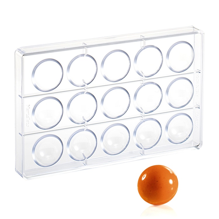 Форма поликарбонатная для приготовления шоколадных конфет размером 275х175 мм из 15 ячеек, диаметром 4 см.Состав: PC поликарбонат