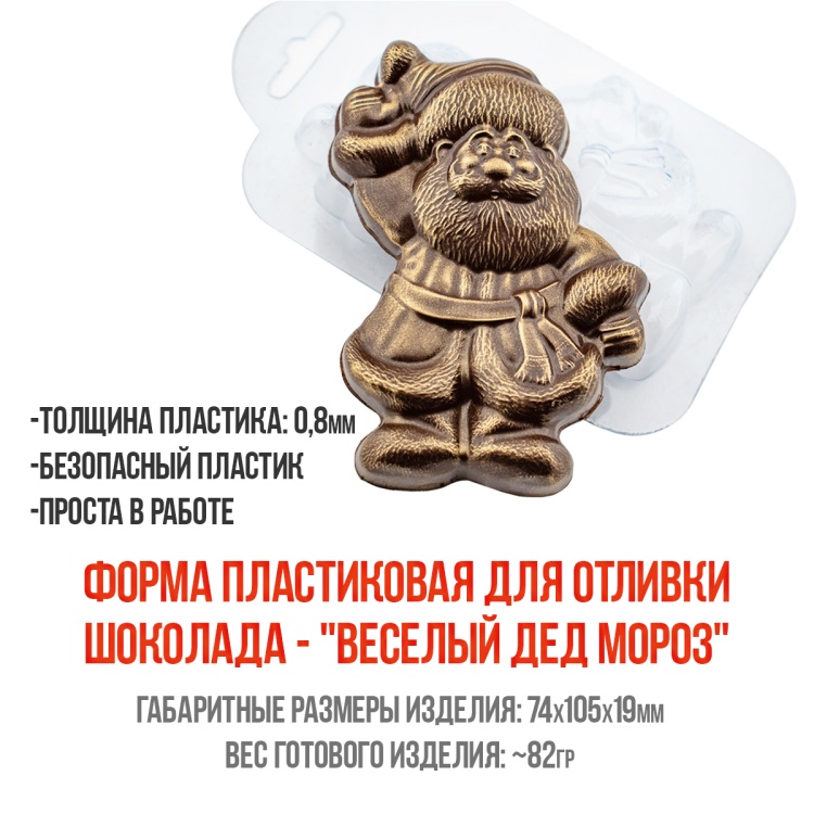 Форма пластиковая для отливки шоколада - "Веселый Дед Мороз"