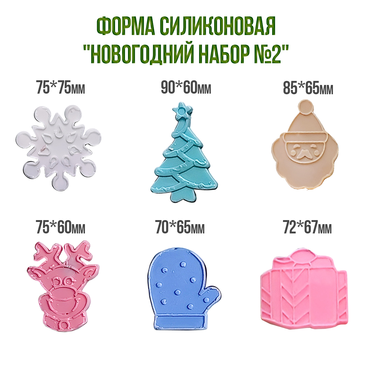 Форма силиконовая - "Новогодний набор №2", 6 ячеек