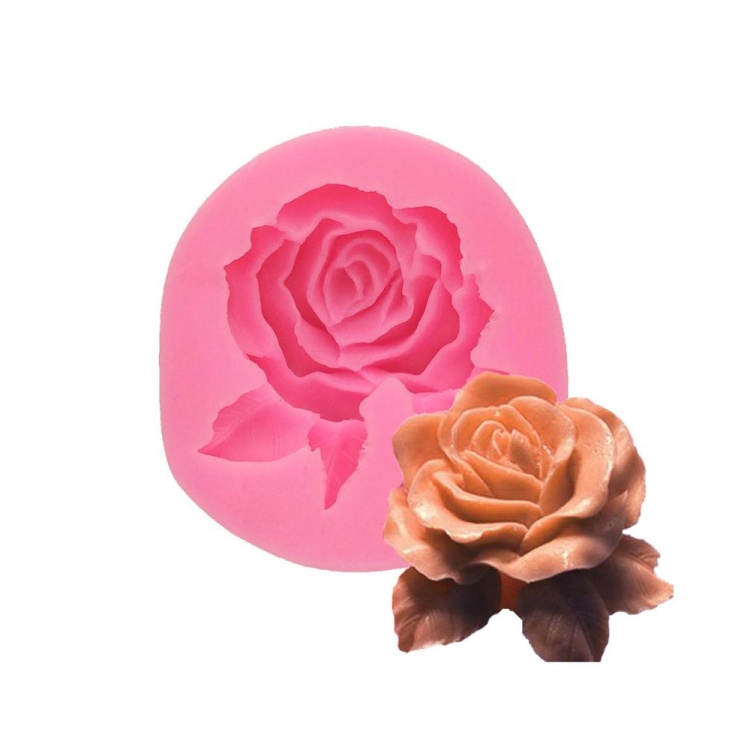 Молд силиконовый 3D - "Роза 2Д с листом"