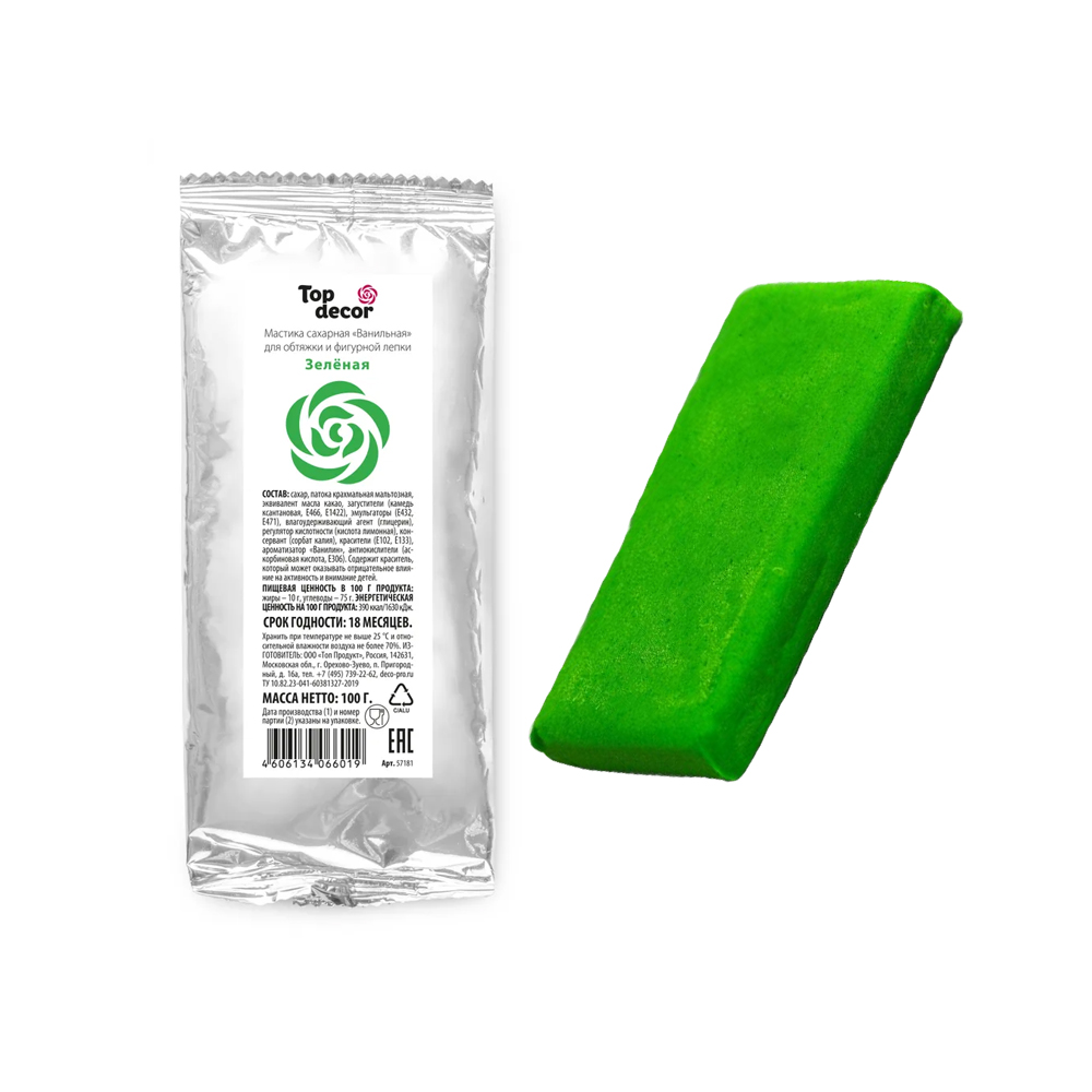 Сахарная мастика ванильная "Топ-декор" - зеленая, 100 гр