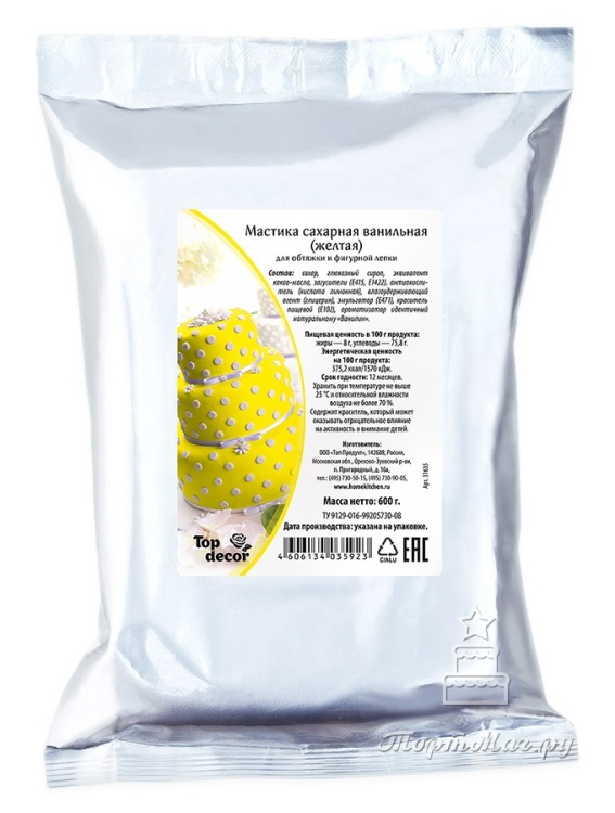 Сахарная мастика ванильная "Топ-декор" - желтая, 0,6 кг