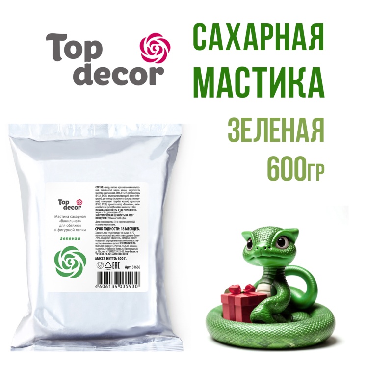 Сахарная мастика ванильная "Топ-декор" - зеленая, 0,6 кг
