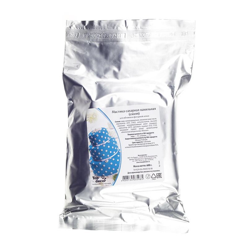 Сахарная мастика ванильная "Топ-декор" - синяя, 0,6 кг