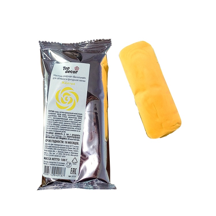 Сахарная мастика ванильная "Топ-декор" - желтая, 100 гр