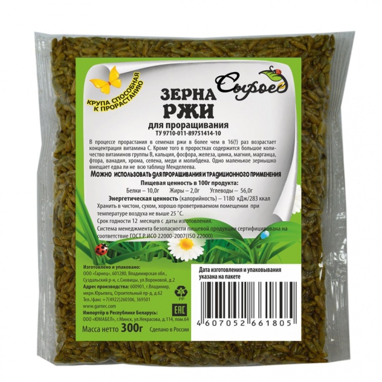Зерна для проращивания Рожь ТМ Сыроед 300 гр (п/п пакет)