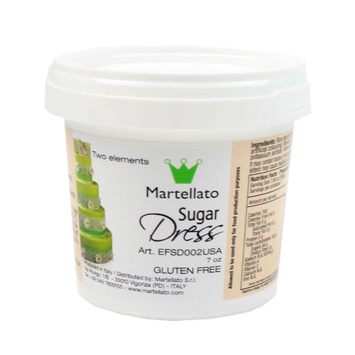«SUGAR DRESS» - это продукт, который позволяет создавать эластичные и прочные утонченные декоры и кружева, а также исключает поломки на этапе формирования и размещения украшений на торт.Наличие