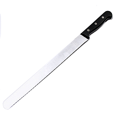 Нож с длинным гладким лезвиемпластиковой ручкой.Длина лезвия: 30см.