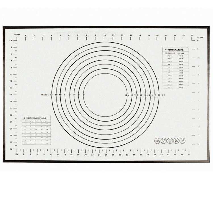 Описание и свойства: Коврик силиконовый оснащён разметкой, которая помогает осуществлять необходимые замеры и контролировать процесс изготовления кондитерских и хлебпекарных изделий. Выдерживает температуру от -50С до +230С. Выдерживает температуры от -50С до +230С. Используется также для работы с тестом, сахарной мастикой, карамелью. Не требует смазки, легко моется.