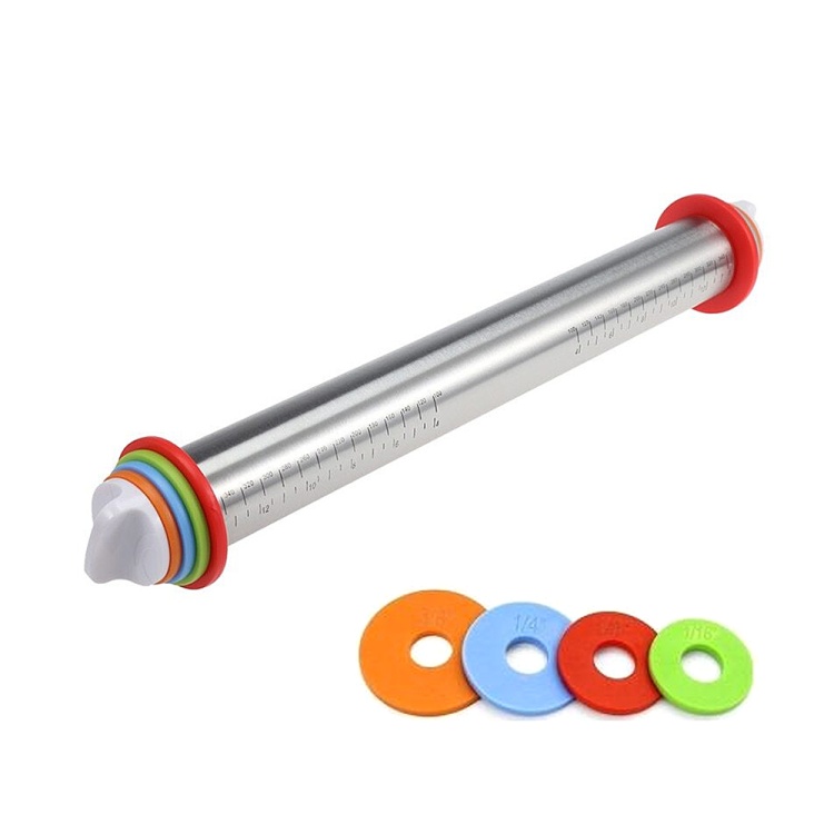 Скалка изготовлена из нержавеющей стали - более гигиенична, чем древесина, прочна и безопасна для пищевых продуктов. Имеет нанесенную шкалу, а также для удобства раскатывания теста нужного размера и толщины три сменных диска разработанные с учетом наиболее распространенных размеров и постепенно увеличивают радиус: 2 мм; 3 мм; 6 мм; 10 ммРазмеры:
