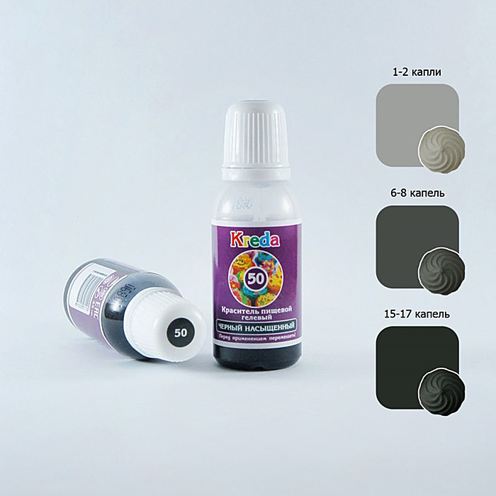 Краситель гелевый Чёрный «Kreda», идеально подходит для окрашивания мастики, айсинга, желе, суфле, напитков, кремов и т.д. Специальный «носик» флакона позволяет формировать четкую каплю для точного дозирования, что особенно важно в работе кулинаров.Наличие
