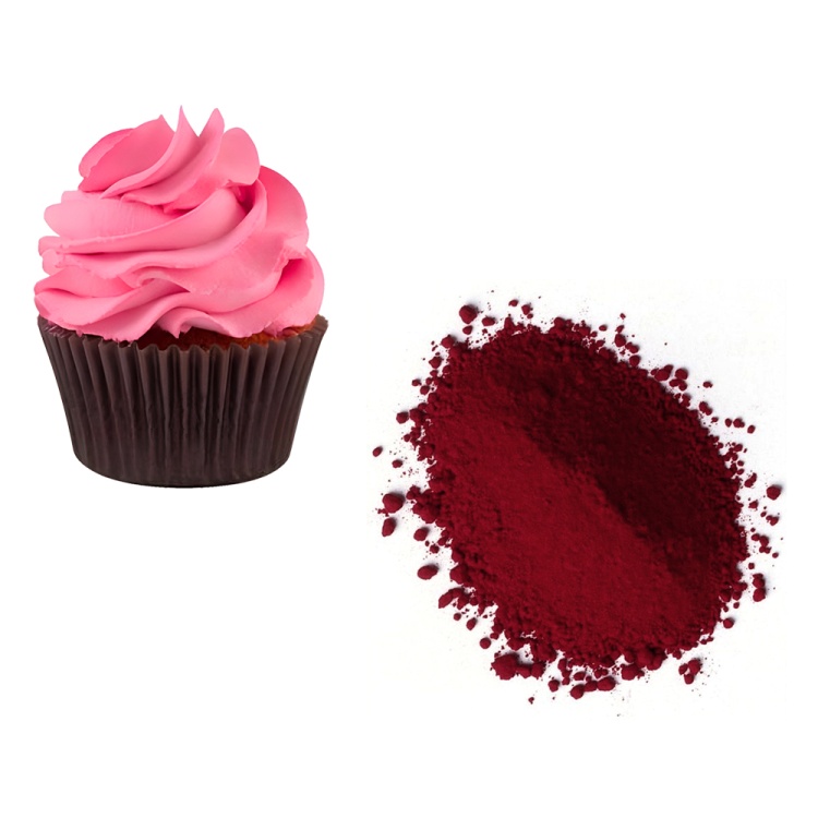 Концентрированный, водорастворимый пищевой сухой краситель насыщенного красно-малинового цветаНаличие