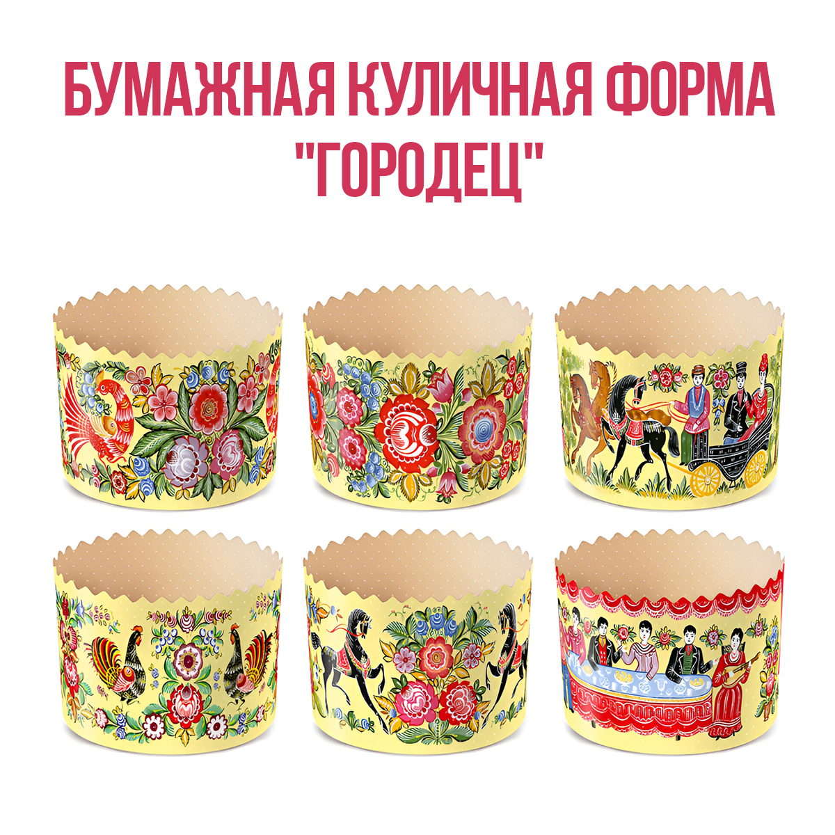 Бумажная куличная форма - "Городец", 70/85 мм,150 гр. (5 шт)