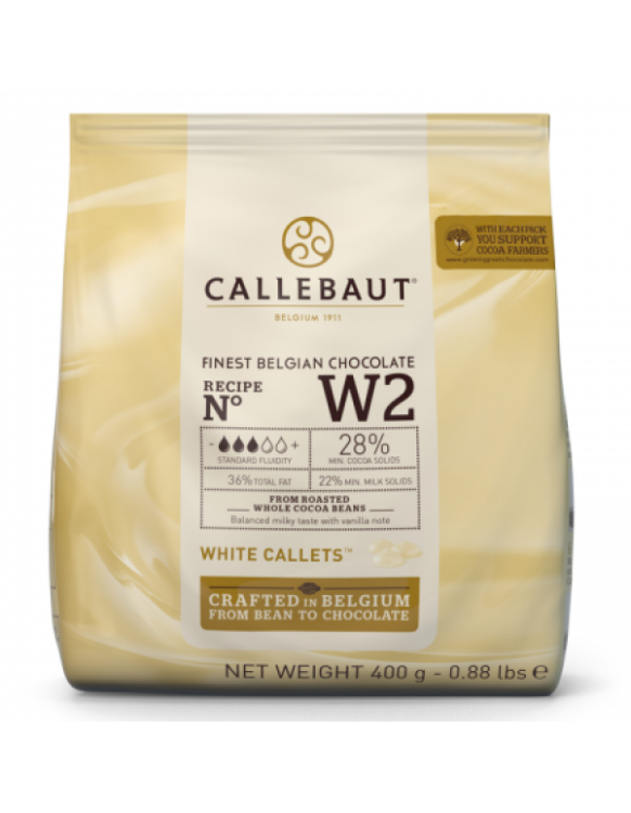 Белый бельгийский шоколад "Callebaut Select". Сбалансированный сливочный вкус с нотками ванили.Идеально подходит для отливки фигур и конфет, глазировки конфет, приготовления начинок, ганаша и декора.