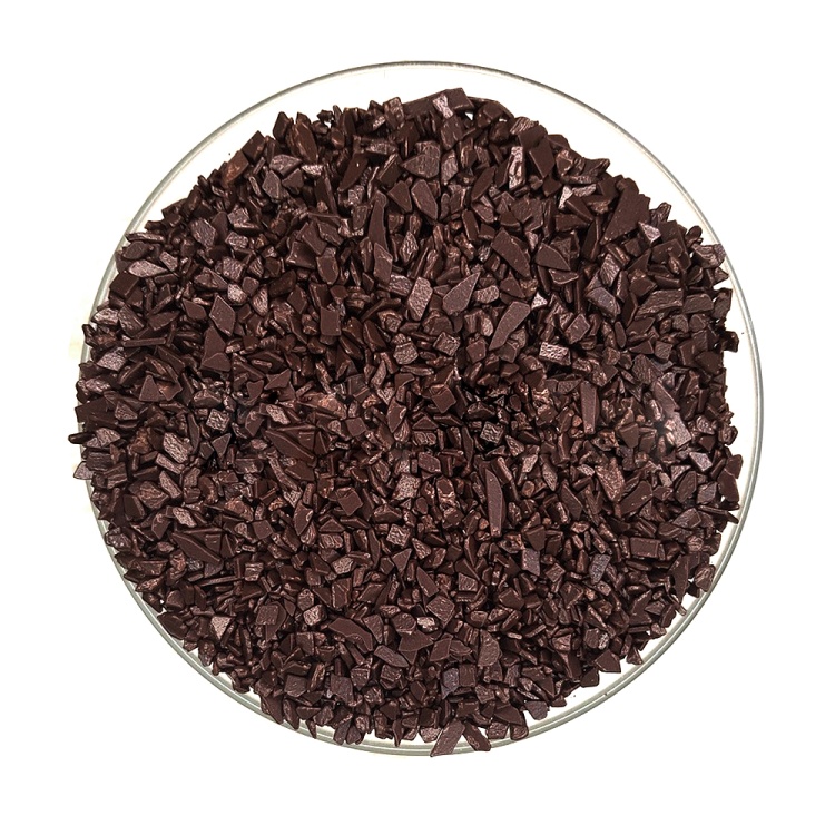 Термостойкая лауриновая кондитерская глазурь в виде блестящей крошки, покрытой глюкозным сиропом.Заменитель черного шоколада.