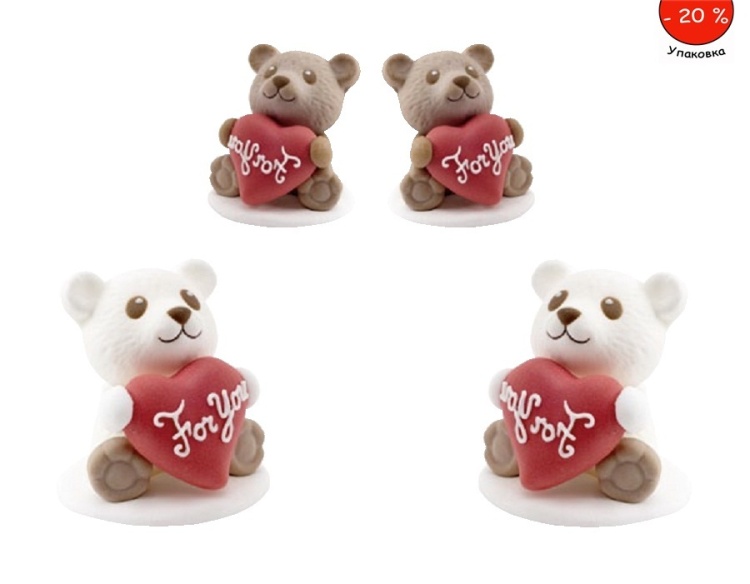 Сахарные фигурки - "Медведи с сердцем", 40шт. (20024)