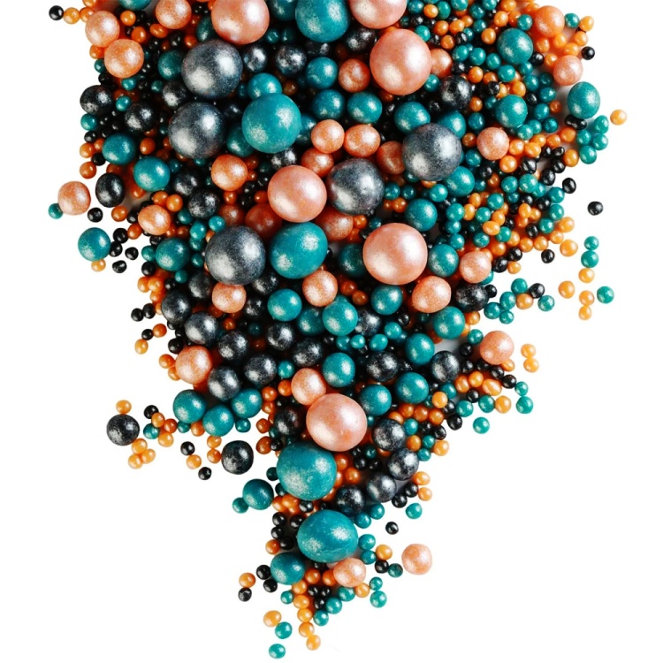 Драже рисовое в глазури - "МИКС 172 темная бирюза/персик/черный ", 50 гр