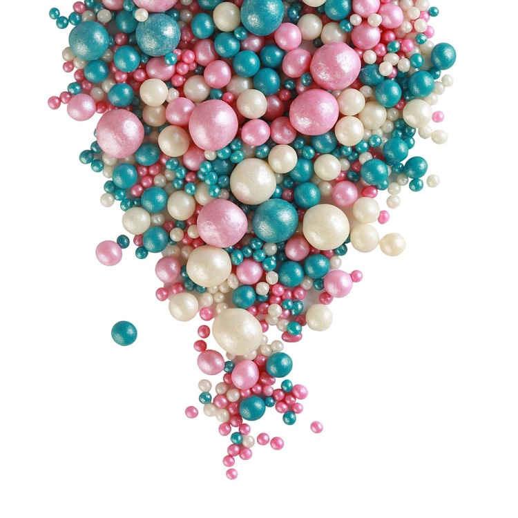 Драже рисовое в глазури - "МИКС 243 темная бирюза/розовый/белый жемчуг", 50 гр