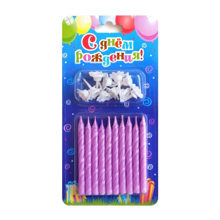 Свечи для торта "Классика Сиреневые" набор 10 шт