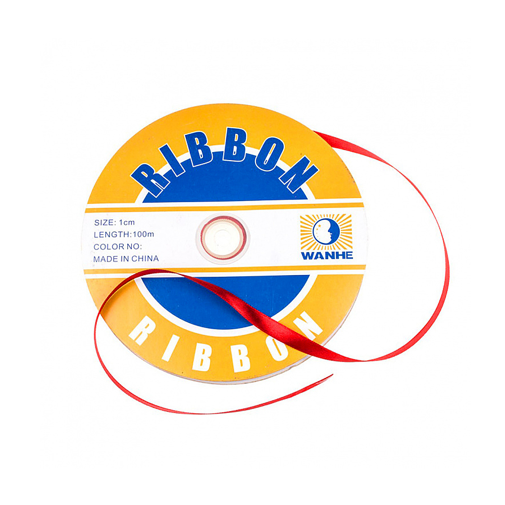 Лента атласная - Ярко-красная, 10 мм (100 м)