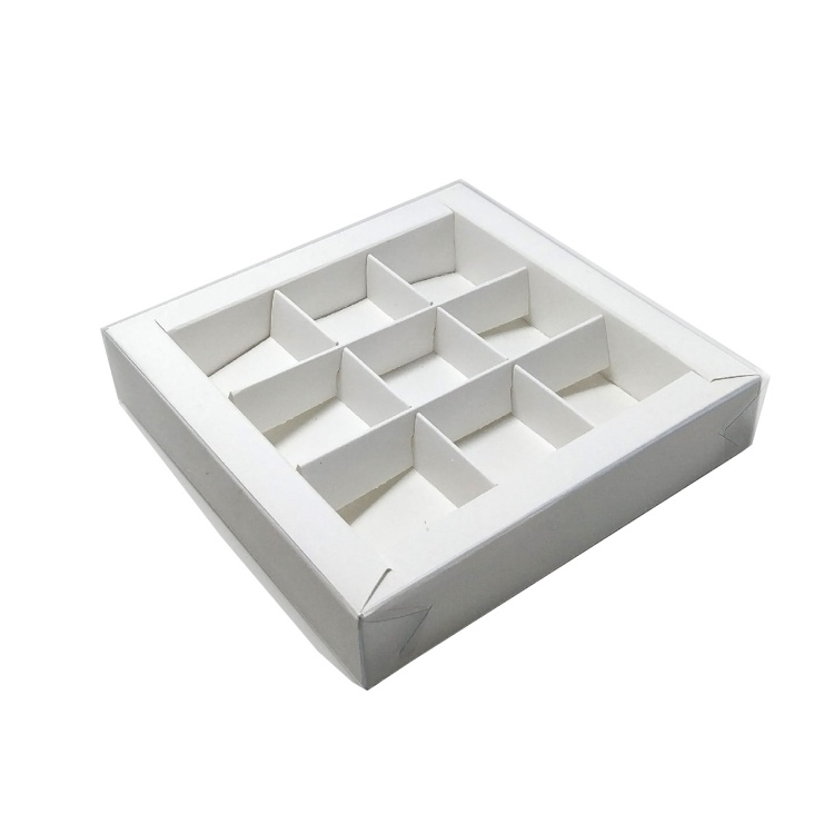 Коробка для 9 конфет с пластиковой крышкой 155*155*30 (белая)