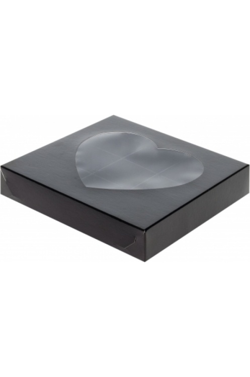 Коробка для 9 конфет с окошком сердце 160*160*30 (черная)