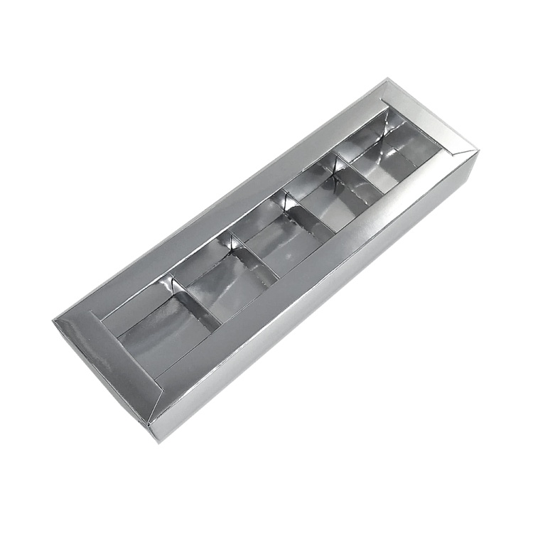 Коробка для 5 конфет с прозрачной крышкой 235*70*30 (серебро)