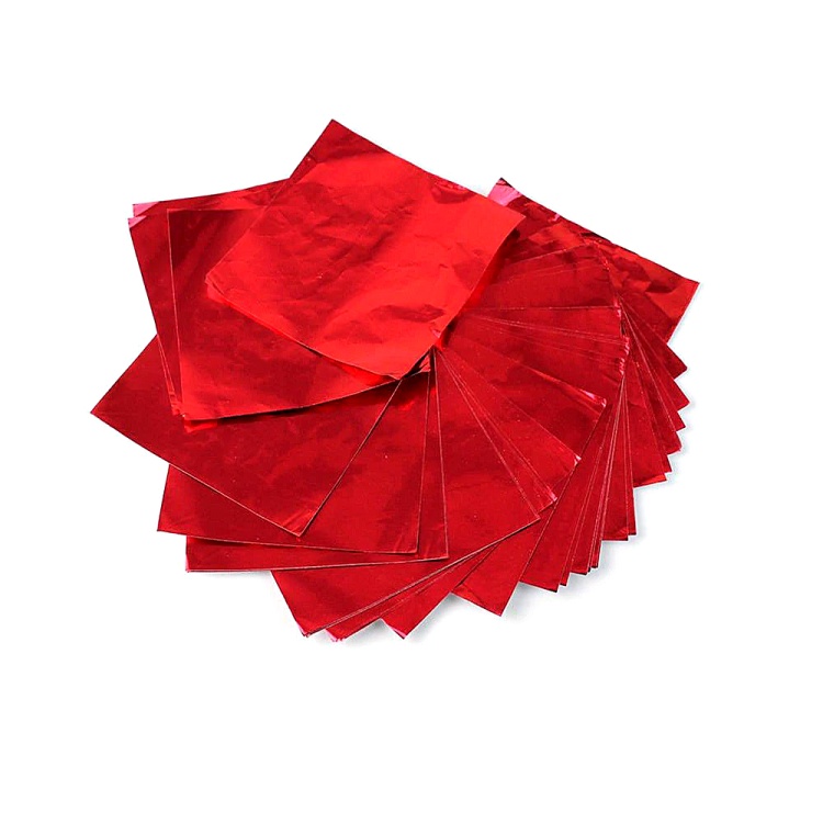 Фольга оберточная для конфет - Красная 10*10 см, 100 шт
