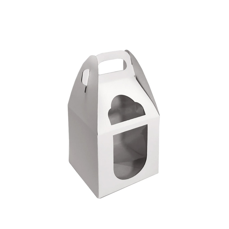 Самосборная коробка с ручкой и окном, не требующая дополнительного скрепления. Предназначена для 1 кулича или любого другого десерта.Материал: картон.